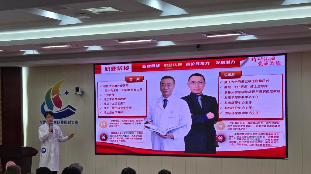 自2024年10月大赛启动以来,学校高度重视、统筹推进,构建“以赛促学、以赛促教、以赛促就”育人体系,成功举办第四届校级职业规划大赛暨全国职业规划大赛校级选拔赛,充分发挥赛事的示范引领作用。此次在全国大学生职业规划大赛中的历史性突破,不仅是哈医大学子个人能力的精彩展现,更是学校深化职业规划教育、推进人才培养改革的生动缩影。未来,学校将打造“赛事引领—实践赋能—服务护航”的全链条育人机制,激励更多学子锚定职业理想,勇担健康使命,为培育新时代医学栋梁、推进健康中国建设持续贡献哈医力量。