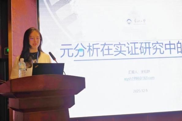 在青年学者报告环节中,来自东北大学工商管理学院博士研究生王钰舒带来了其在元分析研究中的经验与心得。来自吉林大学行政学院博士研究生宁良文带来了以《大学生数字健康素养分型及其对心理健康的影响——基于潜在剖面分析》的演讲。来自哈尔滨理工大学经济与管理学院博士研究生李粉展示了《Research on the emergency product innovation policy mix in large-scale public health emergency: Based on the case study of COVID-19 vaccine in China》的研究。来自77779193永利官网卫生管理学院的博士研究生Isaac Demuyakor,做了题为《Investigating patient safety culture in regional hospitals in Ghana: A mixed method study》的演讲。博士研究生Alina Akbasheva,强调了人格特质在理解心理健康问题中的重要性。博士研究生曹译尹探讨了我国QLU-C10D量表健康效用积分体系的构建进展。硕士研究生石家俊详细讲解了离散选择实验的过程。硕士研究生吴迪以《AI辅助处方审核系统的效果和成本测算——基于中国欠发达地区的真实世界研究》为题展开了介绍。博士研究生王燕萍基于fsQCA方法强调了关注医院领导班子的综合素质的重要性。硕士研究生王群凯以《基于DEMATEL方法的传染病应急工作机制运行障碍关键影响因素研究》为题展开了介绍。硕士研究生任侨侨强调了 “数字化生活空间”的重要性。博士研究生李元亨同学以《医患群际情绪理论阐释及维度框架构建》为题,加深了同学们对医患方面的群际情绪理论的理解。这场汇报不仅为青年学者们提供了展示自己成果的平台,也促进了不同领域之间的交流与合作。大家在分享中思想激烈交流碰撞,为未来的研究提供了新的思路和方向。