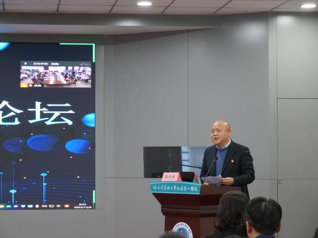 哈医大一院郭庆峰副院长为本次论坛致开幕词,他首先介绍了医院护理学科基本概况、护理师资队伍建设情况及护理研究生教学工作等。他强调开展本次论坛的宗旨是为护理研究生营造良好的学术交流氛围,提供一个高起点、高水平、高层次的学术交流平台,促进研究生之间的学术交流,提升学术内涵,拓宽学术视野,激发研究生创新灵感,培养科研兴趣,拓展其创新思维,提高研究生的科研工作能力和培养质量,推动护理学科高质量发展。