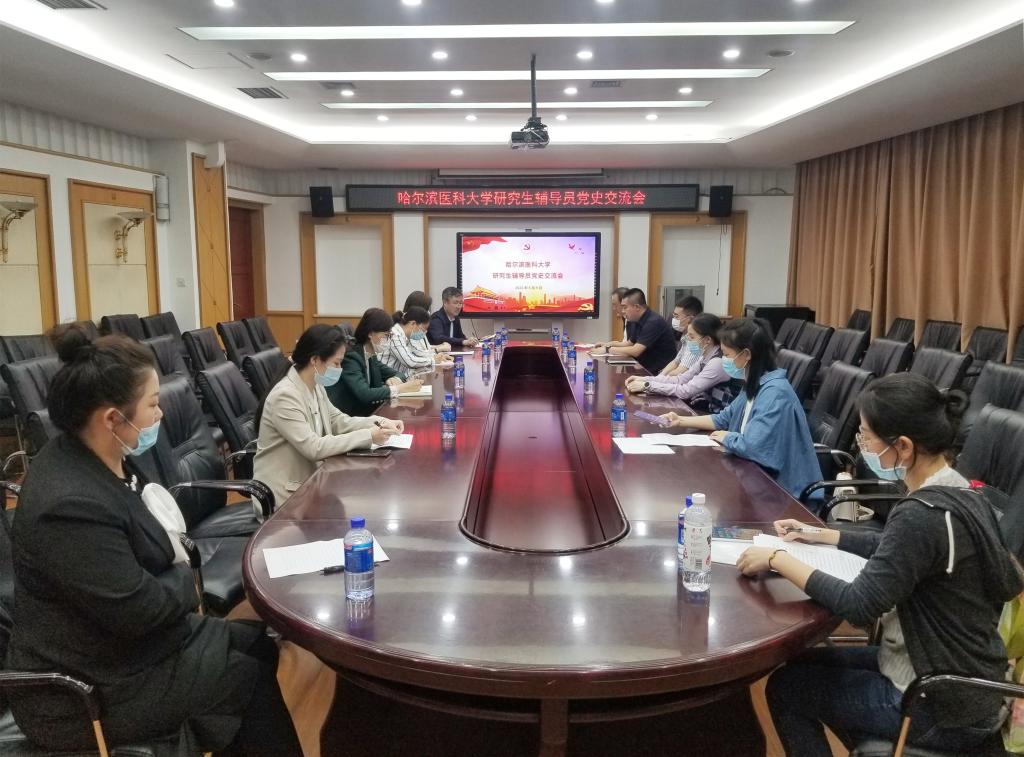 基础医学院张雪莹、药学院张广明、第四临床医学院庄睿卿、大庆校区刘思岐、第一临床医学院刘梦超、孙佳丽、柴光婷、王丽亮和地病中心王子颖慧分别结合党史学习情况就研究生的党团建设、日常管理、安全教育、心理咨询、就业指导和危机事件应对等方面进行汇报。